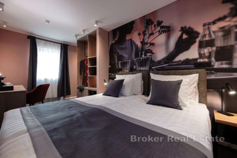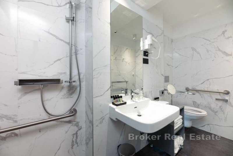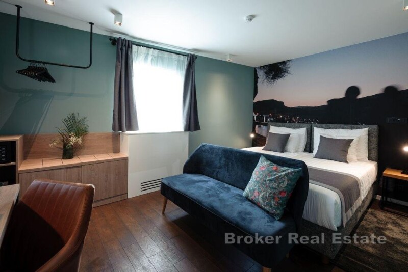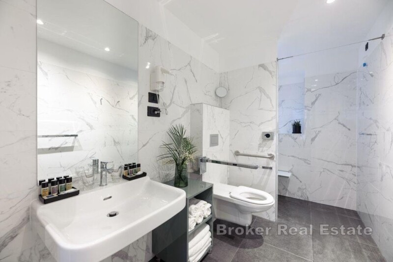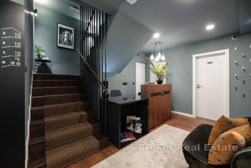 A luxurious heritage hotel located in the heart of Split, in Varoš, close to the waterfront and Diocletian's Palace. It is registered as a 4-star facility and extends over 4 floors of a completely renovated stone house. The hotel has a total of six modern and thematically decorated rooms. On the ground floor of the hotel there is a reception, a room with a bathroom for the receptionist, a laundry room, a toilet for guests and a room for breakfast that can also be served on the outside terrace. There are two rooms with a bathroom on each floor, one of which is intended for two and has about 22 m², while the other family room has about 35 m² and is intended for four. The ground floor and first floor of the hotel are fully adapted for disabled people and have an elevator, and the rooms are rented fully equipped (TV, refrigerator, safe, kettle, coffee machine). The entire facility is airconditioned and is sold furnished and equipped. The floors are connected by an external and internal staircase and the hotel was renovated in 2019 and has been successfully rented for tourists since then. An attractive offer due to the proximity of all facilities in the city center and an already established business.