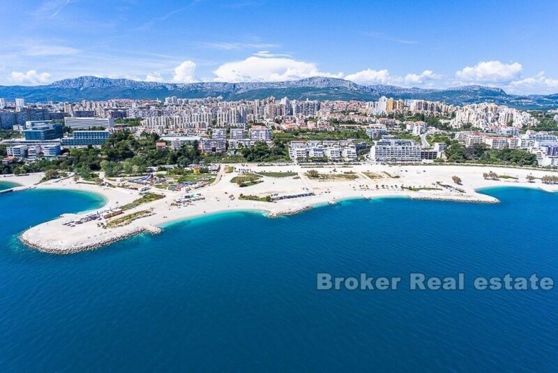 New construction located in one of the most desirable parts of Split – Žnjan. This beautiful two-bedroom apartment will delight you with its spectacular open sea view. It is located on the ground floor of a smaller residential building equipped with an elevator. The orientation of the apartment towards the south-west allows for plenty of natural light throughout the day. The apartment consists of a well-designed layout of rooms, including a hallway, bathroom, two bedrooms, kitchen, dining room and an open-concept living room connected to the terrace/garden by a large modern sliding wall. The property also has its own storage room. An additional benefit of this beautiful new building is a parking space in the garage. This property, first row to the sea, represents the ideal combination of luxury, comfort and practicality, providing the perfect place to live or as an investment with the potential for high profitability.
