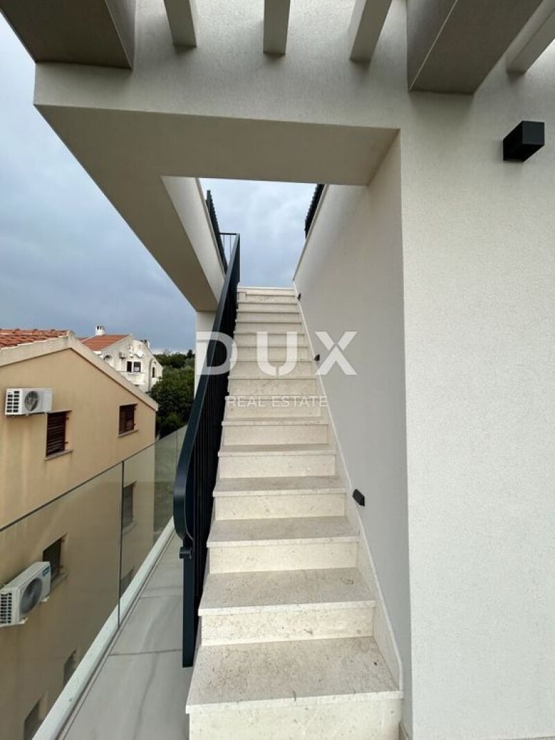 ZADAR, KOŽINO - Penthouse 90m from the sea Ž For sale is a luxurious penthouse located on the second floor of an exclusive building with a recognizable design, which includes only three apartments spread over three floors. This apartment with a total net area of 124.58 m² offers a premium living space for the most demanding buyers, oriented to the south and located only 70 meters from the beach. Characteristics of the Penthouse: Location: Kožino, suburb of Zadar, 70 meters from the beach. Floor: Second floor. Square footage: Total area of the apartment: 124.58 m². Master bedroom: 18.70 m² with walk-in wardrobe and private bathroom. Two additional bedrooms: 8.40 m² and 8.80 m². Additional bathroom: 5.0 m². Open living space (kitchen, dining room and living room): 37.1 m². Uncovered balcony: 28.56 m² with a view of the sea and the Zadar island archipelago. Roof terrace: 102.70 m² with a panoramic view of the sea on three sides. Storage room in the basement: 6.08 m². Parking spaces: Two outdoor parking spaces. Penthouse details: Spacious master bedroom: 18.70 m², with walk-in wardrobe and private bathroom provides luxury and comfort. Additional bedrooms: Ideal for family or guests, 8.40 m² and 8.80 m². The central part of the apartment: The space of 37.1 m² includes a kitchen, a dining room and a living room, created for family gatherings and social activities. Uncovered balcony: Surface 28.56 m², offers a relaxing view of the sea and the Zadar island archipelago. Roof terrace: Surface area 102.70 m², offers enormous design possibilities and a panoramic view of the sea from three sides. Technical Specifications: Quality construction: The building was built with the highest quality materials from renowned manufacturers. Energy efficiency: Thermal facade, underfloor heating in all rooms, air conditioners in every room. High-quality external carpentry: Triple glazing, electric blinds and mosquito nets. Location: The penthouse is located in the quiet and picturesque village of Kožino, part of the city of Zadar in Zadar County. This environment makes it an ideal place for a prestigious and peaceful lifestyle, with easy access to all necessary amenities such as shops, restaurants, schools and cultural attractions. Documentation: Documentation and ownership are in order. Dear clients, the agency commission is charged in accordance with the General Terms and Conditions. Josip Šestan Agent s licencom E- www.dux-dalmacija.com Lejla Jajčanin Agent s licencom E- www.dux-dalmacija.com ZADAR, KOŽINO - Penthouse 90m from the sea.