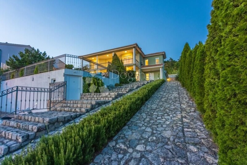 BEAUTIFUL VILLA ABOVE CRIKVENICA In an exclusive location above the town of Crikvenica, there is a superb property that will delight you with its spectacular view of the sea and the island of Krk. This amazing villa offers an extraordinary micro-location that guarantees complete privacy, since there are only a few luxury villas in the immediate vicinity. The advantage of this property is the fact that in front of the house there is a green belt on which construction is prohibited, so the new owner does not have to worry that his beautiful view will ever be hidden. The area of the villa is as much as 550 m2, and it is located on a spacious and landscaped garden of 1370 m2. The villa is extremely well designed and is spread over three floors. As soon as you enter this beautiful property, you will be enchanted by the large open space that includes the living room, dining room and kitchen. Large glass walls let in plenty of natural light and offer a wonderful view of the surrounding landscape. The villa has a total of five rooms and five bathrooms, providing enough space for a comfortable stay for family or guests. In the basement there is a part intended for socializing and recreation, while on the ground floor there is a living room, kitchen and dining room and one bedroom with a bathroom that leads to a beautiful terrace with a pool of 38 square meters and an open view of the sea. Upstairs there are four spacious bedrooms, each with its own bathroom, providing privacy and comfort. The yard of this villa is horticulturally arranged and maintained, creating a peaceful and pleasant environment. Parking for up to five cars is available within the property, providing enough space for all your needs. At the back of the villa there is a covered area for hanging out with a barbecue, ideal for relaxing and enjoying with family and friends. This property is truly extraordinary and represents a unique opportunity for those who want to live in a luxurious environment with an incredible view of the sea and the island of Krk. Its location allows you to enjoy privacy and peace, while at the same time it is only 3 kilometers from the center of Crikvenica. Also, the airport on the island of Krk is only 20 kilometers away, and the center of Rijeka is 30 kilometers away. With all these amenities and spectacular design, this exceptional property is the perfect place to enjoy life at the highest level. Do not miss the opportunity to become the owner of this unique villa and experience the ultimate luxury it offers. FOR MORE INFORMATION AND VIEWINGS: DARIO ORIOVIĆ 097/ 765 0205 dario.oriovic@dogma-nekretnine.com.