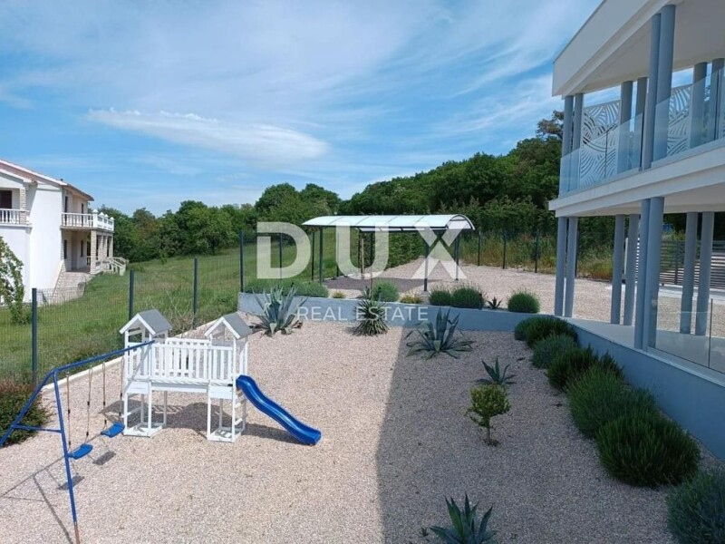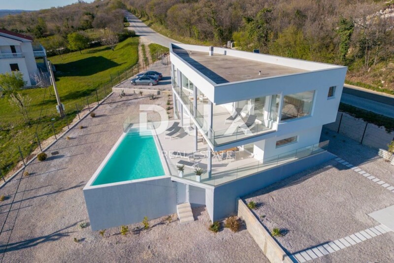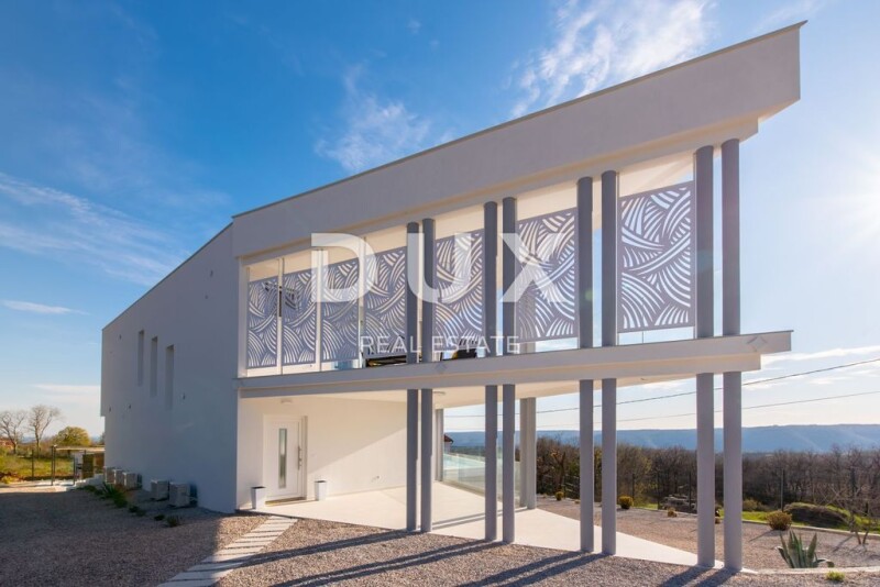 On the southeastern coast of Istria, at the place where the green hills meet the sea, where nature and heritage come together, there are two towns of similar size, but with different but mutually complementary characters - Labin and Rabac. The picturesque town of Labin rises on a hill 320 m high, only five kilometers from the white pebble beaches in Rabac. Intertwined with rich history and mining that marked this region, Labin, which was declared an independent republic for a short time, is today a fascinating city of contradictions; old and new, history and present, tourism and art. Not far from the town of Labin, with an open view of the sea, is this luxury villa of modern architecture, with a total area of 223 m2. The ground floor has an open space concept and contains a kitchen with a dining room and a living room, a guest toilet and a storage room. The ground floor leads to a terrace with a swimming pool and a wonderful view. Internal stairs lead to the first floor where there are three bedrooms, each with its own bathroom and terrace. The terrace offers a wonderful view of nature and the sea. The property has a built-in chimney that leaves the possibility of heating with solid fuels. The stated price refers to the furnished and equipped property. The villa is located on a completely fenced and landscaped garden. It is only a few minutes' drive from the sea and ten minutes from the city center, making it an excellent investment if you want to engage in tourist rentals and thus get a faster return on invested funds or as a luxurious family home. Dear clients, the agency commission is charged in accordance with the General Business Conditions: www.dux-nekretnine.hr/opci-uvjeti-poslovanja Stefani Kapel Agent s licencom E- www.dux-istra.com ISTRIA, LABIN - Luxury villa with a beautiful view of the sea.