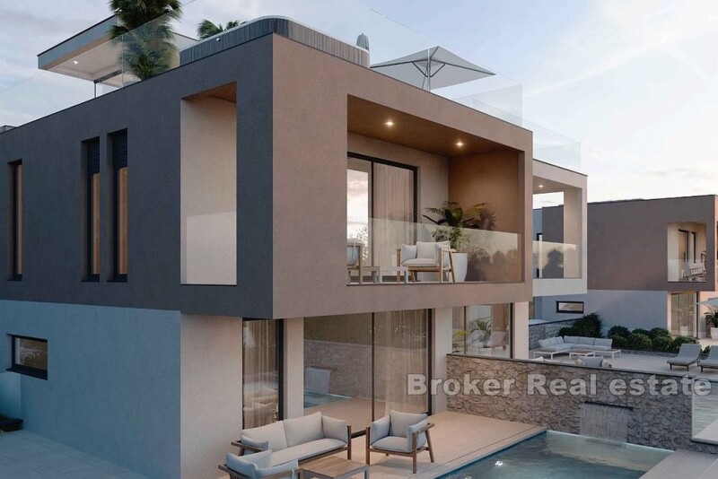 A new semi-detached house with a swimming pool is for sale, located on a plot of 600 m2. The garden includes a swimming pool and sunbathing area, parking, a garden and a yard of gross 160 m2. The main entrance gives access to the ground floor of the house, which consists of one bedroom, bathroom, dressing room, kitchen, dining room and living room. From the common rooms on the ground floor there is access to the outdoor area with a swimming pool, sun deck and garden. An internal staircase leads to the upper floor where there are three bedrooms and two bathrooms, one of which is en suite in the south with its own bathroom and an open view of the sea. Considering the desirable location of the property, it is ideal for family use for everyday life or as a vacation home.