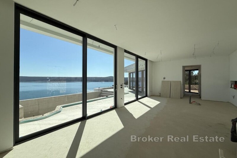 A modern, spacious single-story house near the beach, with a panoramic sea view. The property is located in a prime location and on the highest plot of the complex, offering complete, maximum privacy and uncompromising comfort. Situated on a spacious plot of 808m2, the villa itself occupies 206 m2 of living space. The garden is modernly designed with natural Brač stone, rich horticulture with Dalmatian plants, and consists of a minimum of three parking spaces, an outdoor kitchen with barbecue, a spacious sunbathing area and a heated infinity pool of 42 m2. The entrance itself is designed to create a “wow effect” and immediately from the main entrance to the house there is an open view of the sea thanks to glass walls over 3 meters high. The windows extend along the entire south side of the house, which allows natural light to enter the entire property all day long. Designed in an open space concept, with a ceiling height of 4 meters, the house exudes airiness and luxury. Large glass walls offer a very good connection, connecting the interior with the exterior. The living space itself consists of four bedrooms, each with its own bathroom, one shared toilet, a kitchen with an island, a dining room and a living room. From the outside of the house, you can access an additional space that serves as a storage room. During construction, special attention was paid to the privacy of the building, the quality of the building materials and additional amenities in the house such as underfloor heating throughout the property, cameras, a smart system for opening and closing curtains, an air conditioning system, etc. The property is a real rarity on the market and an ideal choice for those looking for a home in which the components for an exclusive life such as privacy, comfort and luxury are perfectly combined.