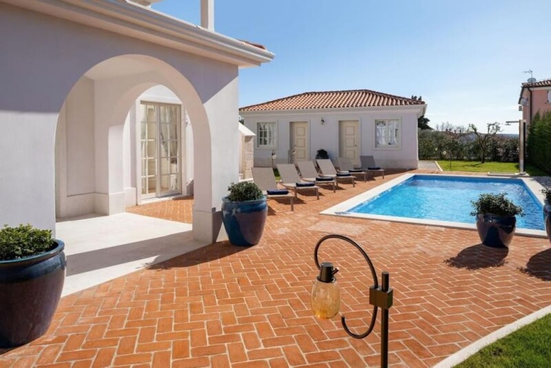 RENT-TO-BUY model is possible! Magnificent villa in Porec area in a luxury condonimium, cca.1 km from the sea! Total area is 338 sq.m. Territory is 929 sq.m. This luxury complex was built in 2019-2020 and since then was functioning as a high-end rental property. As you pass through the entrance area of the villa, you will immediately feel the welcome and luxury ambience that this villa provides. The spacious living room with dining room becomes the heart of the home, a place where family and friends can gather and enjoy moments of comfort. You will look outside and be seduced by the view of the garden and pool, which are just some of the top features of this exclusive home. An elegant interior with a fully equipped kitchen, a comfortable living room and a large dining table allows every guest a carefree stay in combination with a well-decorated outdoor area with a swimming pool. Enjoy with family and friends in this modernly decorated villa, which includes 3 tastefully decorated en-suite bedrooms and an additional 2 en-suite bedrooms in a separate guest facility. One of the most amazing parts of this villa is its roof terrace, which allows you to dive into the magnificent panorama of the sea only 1000m away. Here you can enjoy relaxing in the sun, dive into magical sunsets and create incredible memories with family and friends. The garden of this villa is a real corner of paradise, with a large swimming pool of 36m2 that allows you to take a refreshing swim in the clear waters. Enjoy sunbathing on comfortable deckchairs, immerse yourself in the stunning scent of flowers and relax on the terrace and garden kitchen with barbecue. Here you can create special moments and make your daily routine easier. Every corner of this villa captures your imagination and makes you feel like the ultimate. Nothing is left to chance, every detail is carefully planned to give you an incredible experience of luxury and comfort. This 5-star stylish villa is your chance to indulge in a hedonistic lifestyle. Stay immersed in the luxury, elegance and beauty that this villa offers you. This is where your dreams come true. The price does not include VAT. There is a similar villa for sale nearby. They can be bought in a package for 3 000 000 eur + VAT. Ref: RE-U-26228Overall additional expenses borne by the Buyer of real estate in Croatia are around 7% of property cost in total, which includes: property transfer tax (3% of property value), agency/brokerage commission (3%+VAT on commission), advocate fee (cca 1%), notary fee, court registration fee and official certified translation expenses. Agency/brokerage agreement is signed prior to visiting properties.