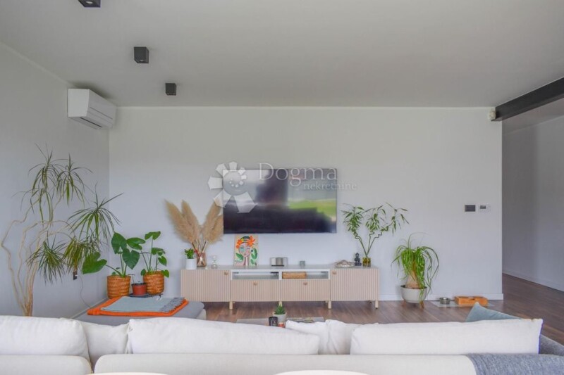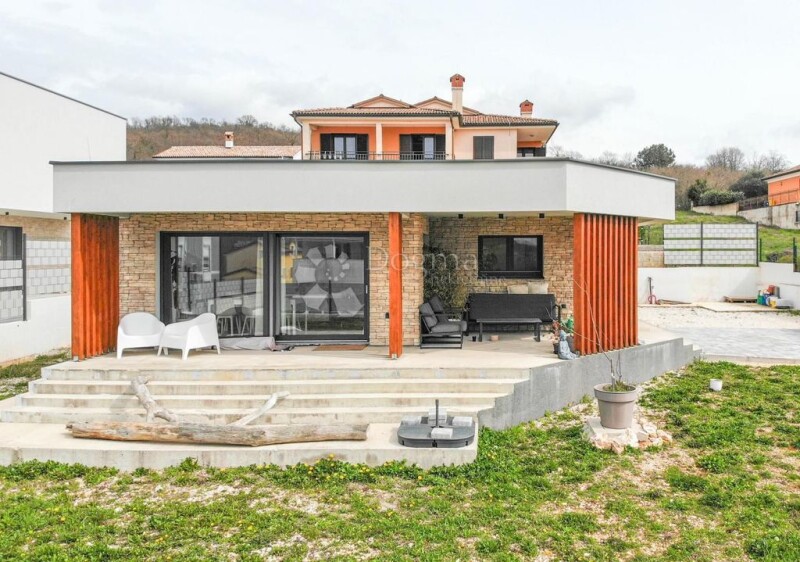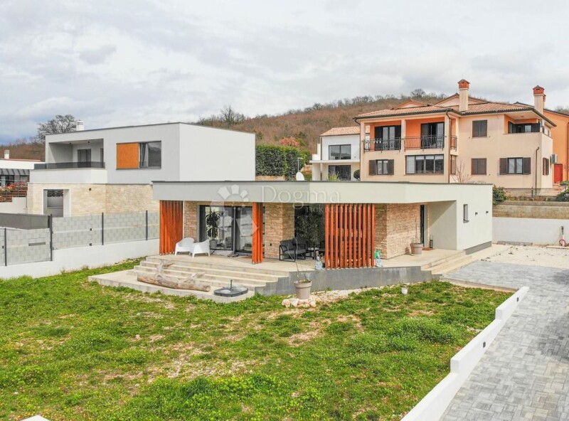 This luxurious bungalow is located in a peaceful neighborhood yet on a busy road in the vicinity of Rovinj, offering excellent connectivity and privacy. With a living area of 134 m² and a large plot of 847 m², the house provides the perfect space for comfort and relaxation. The house is modern, spacious, and functional, with a carefully designed layout. Upon entering, you are greeted by an open space that includes a sleek and modern kitchen integrated with the living room. This open-plan concept allows for plenty of natural light and a sense of airiness, while the terrace access offers an ideal space to enjoy the outdoors and nature. At the entrance hall, there is a practical storage room and a boiler room, enhancing the organization of the space and adding extra functionality. On the right side of the entrance, a hallway leads to three comfortable bedrooms that offer privacy and tranquility. The house includes two modern bathrooms with high-quality sanitary fixtures, creating a perfect ambiance for comfortable living. For the comfort of the entire family, the house is equipped with underfloor heating powered by a heat pump, and air conditioning units provide a cool environment during the summer months. PVC joinery and mosquito nets on all windows ensure high energy efficiency and protection from insects. The house is also pre-equipped for video surveillance installation, and there is the possibility of building a swimming pool on the property, adding further value to this real estate. This house is an ideal choice for a family seeking a luxurious and functional home near Rovinj, with a large yard and all the necessary features for comfortable living.