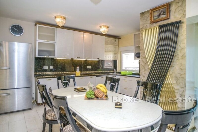 Unique villa with outdoor and indoor pool and sea view located in Makarska. The property with a living area of 900m2 is located on a plot of 595m2 and is spread over four floors. The ground floor consists of an indoor heated pool, fitness room, sauna and relax zone with mini bar. From the ground floor there is an exit to the covered terrace where there is an outdoor pool and a sun deck with an outdoor dining area. The house is made unique by valuable and very special designer furniture. The floors consist of two fully equipped kitchens, two living rooms, study with reading room, nine bedrooms, eight bathrooms, toilet. There are terraces around the whole villa with a view of the sea and islands. It has an energy certificate B and a garage.