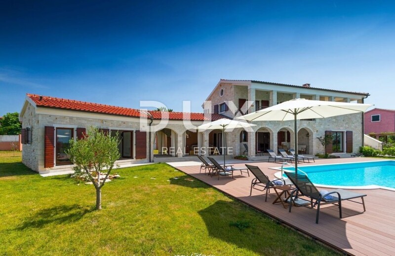 ISTRIA, POREČ- Spacious stone villa surrounded by nature Poreč is located on the west coast of the Istrian peninsula. Due to the Mediterranean climate, natural beauty and preserved cultural heritage, it is an ideal place to stay all year round. The city has 53 surrounding villages where there are modern villas with swimming pools and apartment complexes, while in the center you can find a diverse offer of apartments and flats for sale from rustic stone real estate to luxury new buildings. Poreč is certainly one of the most desirable tourist destinations in Istria, rich in sports and recreational facilities as well as gastronomic offer. The modern attire of a beautiful stone villa located in the heart of Istria of 250 m2 with a spacious garden of 1400 m2, is the reason why this property is an extremely attractive opportunity. The modern edition conquers the villa with its exterior and interior. Exclusive and pleasant ambience consists of a modern kitchen with dining area, living room which is illuminated by daylight throughout the day. The property also contains three extremely spacious bedrooms with bathrooms and toilets, which with their functionality provide absolute privacy. The living room opens onto a swimming pool surrounded by a landscaped garden and a green fence. In a quiet part of the village, this beautiful villa is a combination of modern interior design with traditional Mediterranean construction and contains, among other things, a summer kitchen. It is an ideal property that can be used for rental purposes, but also for a quiet family life, equipped with the latest technology, just a few minutes drive to the sea and beautiful beaches, the first shops and restaurants. Dear clients, the agency commission is charged in accordance with the General Terms and Conditions www.dux-nekretnine.hr/opci-uvjeti-poslovanja Iva Zajc Agent s licencom E- www.dux-istra.com ISTRIA, POREČ- Spacious stone villa surrounded by nature.