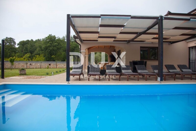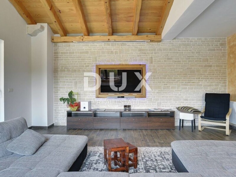 ISTRIA, ROVINJ - a beautiful house in an idyllic setting! ROVINJ - a small town located in Istria that has been declared one of the most beautiful towns in Croatia. Anyone who visits this magical town once has a hard time forgetting it and often returns to it again. The beauty of Rovinj often leaves a deep mark on all visitors, so the connection with it extends for generations. Rovinj is located on the western side of the Istrian peninsula, and extends north of the Lim Channel, and south to Bale. It is adorned with a very indented archipelago with as many as 14 islets and 6 cliffs. The most famous islands are Sveti Andrija (Crveni otok) and Sveta Katarina near the old town center. Rovinj is the strongest tourist center in Croatia and has been recording a record 3 + million overnight stays during the summer season for several years in a row. Guests spend their stay in the rich offer of the city of Rovinj; starting from the numerous and different accommodation capacities, various restaurants and activities, numerous and beautiful beaches, and most importantly, the history of the city and its location. This beautiful family villa is located in this location, just 7 km from the center of beautiful Rovinj, and will enchant you with its character and carefully selected quality materials. The space in the villa is organized in a way to ensure a pleasant stay worthy of today's standards and a modern lifestyle, so its 385m2 is divided into a total of two floors, ground floor and first floor, and a basement or cellar, measuring 100m2, which houses a fireplace, billiards, fitness and bathroom. On the ground floor of the house there is an entrance hall, kitchen and dining room, living room, bedroom with bathroom and another additional bathroom. On the first floor of the house there are three bedrooms with bathrooms. On the spacious, well-maintained garden there is a swimming pool measuring 5.5mx 10.5 m. covered with foil. In the courtyard of the house there are two more built buildings that currently serve as a garage (50m2) and a workshop (70m2). Heating in the house is via central wood heating, the house has 5 air conditioners. Dear clients, the agency commission is charged in accordance with the General Business Conditions: www.dux-nekretnine.hr/opci-uvjeti-poslovanja Stefani Kapel Agent s licencom E- www.dux-istra.com ISTRIA, ROVINJ - beautiful house in an idyllic setting!.