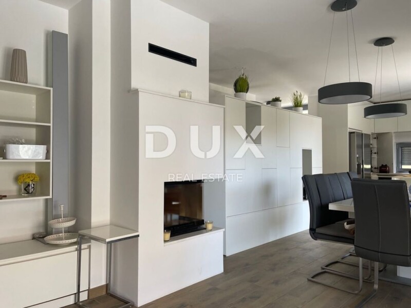 ZADAR, KOŽINO - Luxury villa with heated pool Located in a small seaside town Kožino near the urban center of Zadar, luxury villa with sea views only 90 m from the first beach invites you to enjoy the well-deserved luxury. With a total area of 470 m2, the villa, built in 2019, has eight air-conditioned bedrooms and five bathrooms spread over three floors. In addition to underfloor heating, the villa has a solar system, fireplace, and is equipped with high quality ALU joinery. On the ground floor of the villa there is a fully equipped and luxuriously decorated apartment with two bedrooms, and an open space living room, kitchen and dining room. The luxurious design of the villa decorated to the latest standards and equipped with the best brands for interior design impresses with its minimalist simplicity. On the ground floor there is a spacious terrace with a garden equipped with automatic lawn irrigation and a large heated pool of 40 m2. On the first and second floor there are two fully furnished apartments with beautiful sea views. The villa also has a large basement of 116 m2. The villa has eight parking spaces. The nearest beach is only a few minutes walk away from the quiet place Kožino. In the immediate vicinity is the urban center, the city of Zadar with a very rich and developed cultural content. The nearest airport is 20 km from Kožino. In the vicinity there are other interesting maritime places such as Nin, Vir, and Pag to the north or Biograd na Moru to the south. In the small historic town of Nin, there is also the Queen's Beach located on a part of Nin's sandy beach, known as one of the longest in Croatia. Nearby is a site with medicinal mud whose healing properties were known to the ancient Romans. Dear clients, the agency commission is charged in accordance with the General Terms and Conditions www.dux-nekretnine.hr/opci-uvjeti-poslovanja Sara Večeralo Agent s licencom E- www.dux-dalmacija.com ZADAR, KOŽINO - Luxury villa with heated pool.