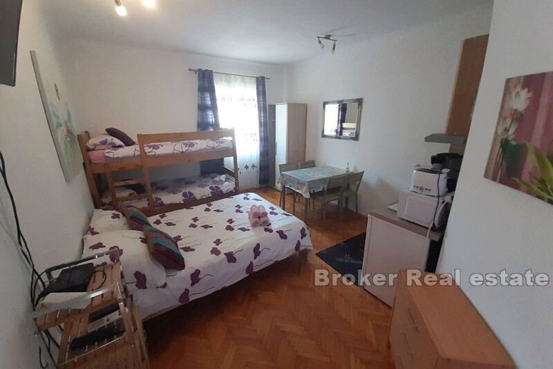 Two renovated stone houses for sale, located in the southern part of town Zadar, near the sea and the beach. Both houses are completely renovated and equipped (except for one room that is not finished inside) and consist of: 1st house – a total of 6 studio apartments (with bathrooms), one of which is not finished inside 2nd house – two bedroom apartment on the first floor and a spacious tavern on the ground floor. In the closed yard there is a shared pool while the whole property is fenced and provides excellent privacy for users. High quality property for tourist rental business with good business numbers and full capacity throughout the year (in winter the apartments are rented to students). The property has access from two streets, is about 200 meters from the sea and free public parking is available nearby.