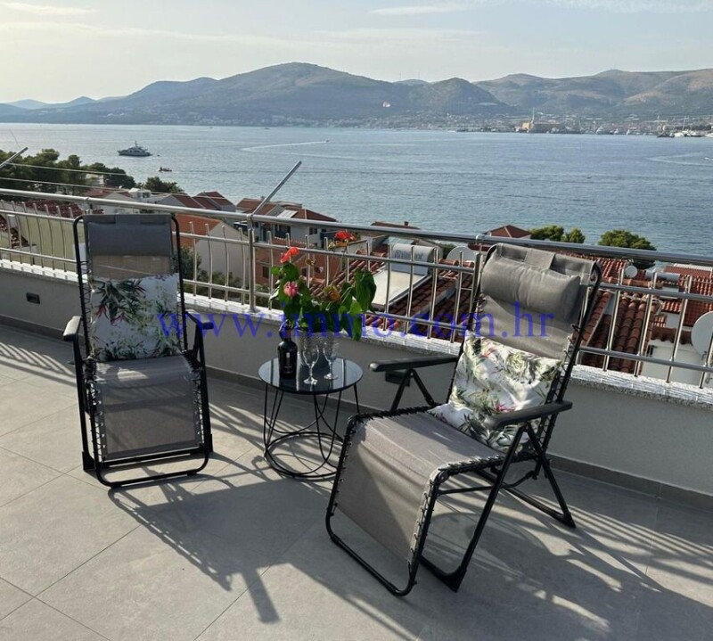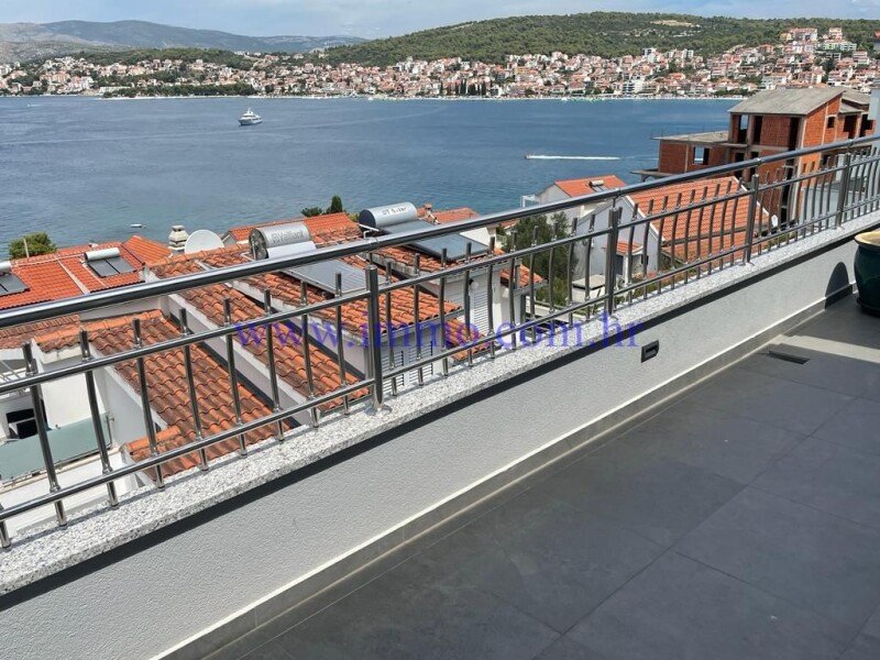 A BEAUTIFUL HOUSE ON THE ISLAND OF CIOVO A beautiful house of 548 m2 is for sale, located in a quiet part of the island of Čiovo, in the small tourist resort of Okrug Gornji, only 150 m from the sea and close to "Copacabana", a beautiful 1 km long pebble beach with cafes, restaurants and sports facilities and entertainment. The house has four floors and consists of two beautiful apartments and a luxurious two-story penthouse. This property is characterized by spacious open spaces and modern design and equipment in all apartments. The apartment on the ground floor has an area of 135 m2 and consists of a spacious living room with a kitchen and dining room, two bedrooms with bathrooms, a relaxation area with a jacuzzi and a bathroom, a storage room and a covered terrace. On the same floor there is also a large glazed summer kitchen with a barbecue and access to a spacious outdoor terrace. On the first floor there is an apartment of 171 m2 consisting of a living room with a kitchen and a dining room, a bedroom with a bathroom, another bedroom, a bathroom and a covered terrace. Also on this floor is the lower part of the penthouse, which consists of a bedroom, a bathroom and a study. The upper part of the penthouse contains a spacious open living and dining room, a luxuriously equipped kitchen, a bedroom, a bathroom and a storage room. The living room and dining room have direct access to a large covered terrace. The penthouse has an area of approx. 230 m2 and offers a wonderful panoramic view of the Čiova water area. In the basement there is a garage, a bathroom, a storage room and a room of 60 m2, which is currently used as a warehouse, and can be converted into another apartment if desired. The house is surrounded by a landscaped garden planted with Mediterranean plants, and there is enough space to install a swimming pool. In addition to the spacious garage, the house also has outdoor parking for three cars. Also, the house has its own mooring for a boat. This property has great potential for a tourist rental or permanent residence of a large family. Additional information about the facility, its exact location and sightseeing is possible after signing a brokerage agreement with the agency that is in accordance with the Data Protection Act and the Real Estate Brokerage Act.