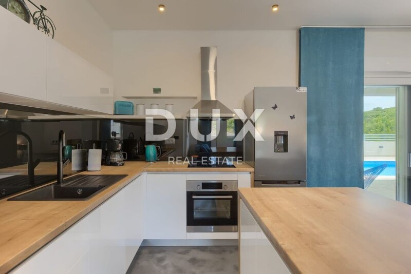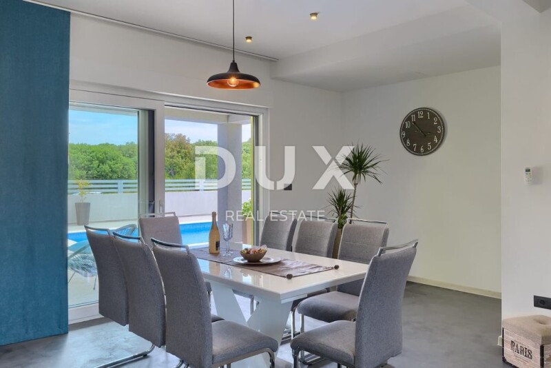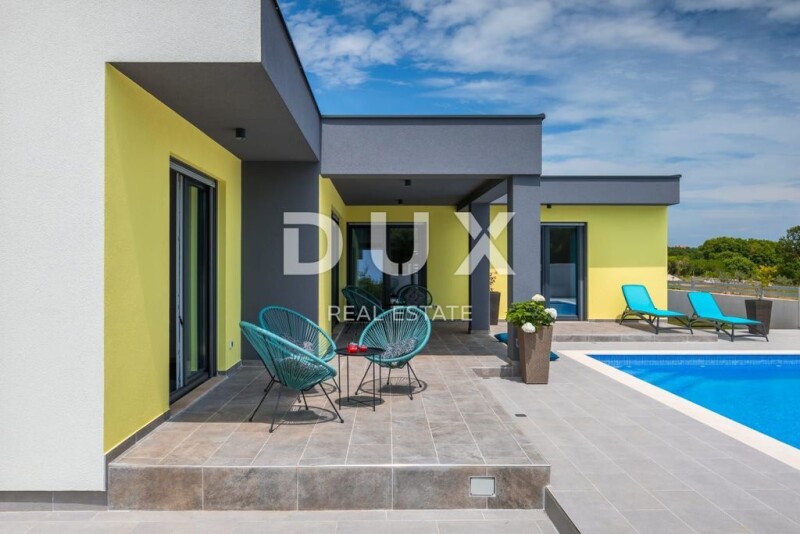 ISTRIA, PULA - Modern single-storey house near the city! In the offer of DUX real estate, we offer you a modern single-storey house built in 2021, which offers an interesting layout and its location ensures peace. In addition to providing you with peace, the property is located in the immediate vicinity of the beaches (Štinjan is the closest), the city center and all amenities, which are on average a 5 to 10 minute drive away. The living area of the interior space is 125 m2 m2, while with the exterior parts or terraces it has an area of 174 m2. It consists of an entrance hallway that partly introduces us to the living room with kitchen and access to the pool through a large glass wall, a bedroom with bathroom and access also to the pool. While the other part of the hallway introduces us to the part of the house where there are two bedrooms and one bathroom, as well as a laundry room and a guest toilet. EQUIPMENT: Heating and cooling via 4 air conditioners (a unit in each bedroom + an additional unit in the living room) and the 5th unit is located in the hallway, more precisely a floor air conditioner. The bathrooms have electric underfloor heating with thermostats that allow you to regulate the heat in the space according to your wishes. Electric shutters and mosquito nets have been installed in areas with large glass walls (living room wall and large walls in the bedrooms). The garden offers enough greenery that is easy to maintain due to the optimal size of the plot, a total of 564 m2, which has automatic irrigation. A beautiful 35 m2 swimming pool adorns the garden and is cleaned using the electrolysis process. The property has a bioseptic tank. PROPERTY POTENTIAL: This modern single-storey house is also used for tourist rentals and the 2025 season is already almost sold out! For you, this means that you can continue your established business if you want to engage in tourism or simply enjoy your home! Ownership 1/1. Dear clients, the agency commission is charged in accordance with the General Terms and Conditions. Ivana Škoro Agent s licencom E- www.dux-istra.com ISTRIA, PULA - Modern single-storey house near the city!.