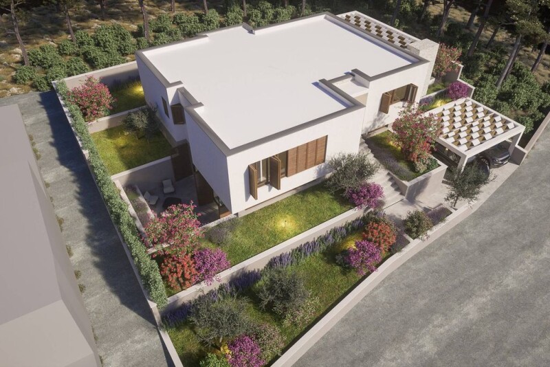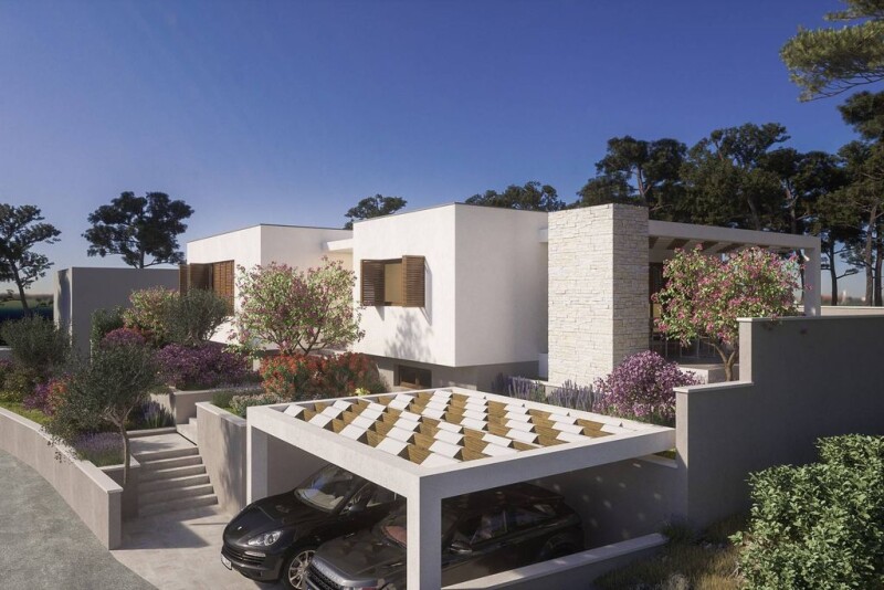 Villa Navisaria is situated in a small and quiet location, just a few minutes drive from the city of Šibenik. Its location ensures tranquility, and its well-thought-out concept and architecture enable quality and luxury of living. Šibenik is one of the oldest Croatian cities on the coastline, with two UNESCO heritage sites, the cathedral of St. Jakov and the Fortress of St. Nicholas. In the summer, Šibenik is a vibrant and exciting destination for tourists from all over the world. Another pearl of Dalmatian nature, the Krka River National Park, with its spectacular waterfalls, is nearby. Šibenik is directly connected by highway in all directions, only 60 km from International Airport in Split and 75 km from Zadar Airport. It is an ideal nautical destination due to the large number of islands and marinas in the archipelago. Villa Navisaria is situated in an ideal location, right next to the sea, in the first row to the coastline. In its immediate vicinity, there is a beach, a coffee bar, a store, and a restaurant. The neighboring plots are rich in vegetation that provides shade during the summer months. The villa extends over 290 m2 of living space and consists of the lower and upper ground floors. The lower ground floor features a garage, an indoor swimming pool, two bathrooms, a storage room, a fitness room, and a smaller living room. An internal staircase leads to the upper floor. The spacious ground floor extends to 155 m2 of living space. It comprises a toilet, an entrance hall, a large living room with a kitchen, and a dining room that leads to a spacious terrace. The second part of the ground floor is the sleeping area, which consists of 4 spacious en-suite bedrooms. The villa is in the final stage of construction, and only high-quality materials and equipment were used during construction.