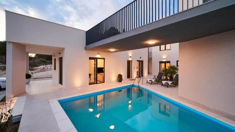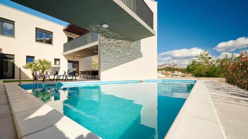 This modern sea view villa near Omis offers the perfect combination of luxury and convenience. With a prime location just 6 km from the center of Omis and only 34 km from the Split Airport, this property is ideal for those seeking a peaceful escape without sacrificing easy access to amenities and transportation. The villa boasts a spacious interior of 250 m2, featuring 6 bedrooms and 6 bathrooms to comfortably accommodate large families or groups of friends. Plus, with a plot size of 250 m2, there is plenty of outdoor space to enjoy the sunny Mediterranean weather. One of the standout features of this property is the swimming pool, providing a refreshing oasis to cool off during the hot summer days. Additionally, with parking available for 3 vehicles, you can easily explore the surrounding areas without worrying about where to park. Inside, the villa is equipped with modern amenities such as air-conditioning and floor heating to ensure a comfortable stay year-round. For added security, there is an alarm system and cameras to provide peace of mind during your stay. Indulge in relaxation with the private sauna, perfect for unwinding after a day of exploring the nearby beaches and attractions. The beautifully landscaped garden offers a serene setting to enjoy alfresco dining or simply bask in the tranquility of nature. The villa also includes a pantry for convenient storage of groceries and supplies, making it easy to prepare meals in the fully-equipped kitchen. Whether you prefer to dine indoors or out on the terrace overlooking the sparkling sea, this property offers the perfect setting for unforgettable gatherings with loved ones. Overall, this sea view modern villa near Omis is the perfect retreat for those seeking a luxurious vacation in a stunning coastal setting. With its prime location, ample amenities, and stylish design, this property is sure to exceed your expectations and create lasting memories for years to come.