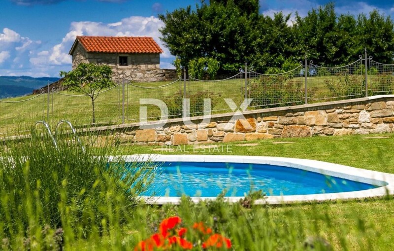 Villa of 350 m2, consists of 2 two-storey residential units. First residential unit consists of a spacious living room with fireplace, richly equipped kitchen, dining room and toilet on the ground floor, two bedrooms and a spacious bathroom with whirlpool tub and shower upstairs. Second residential unit consists of a living room with access to the pool, dining room, equipped kitchen and bathroom with hydromassage shower on the ground floor, separate toilet and laundry room on the internal staircase and two bedrooms and a bathroom upstairs. The villa is surrounded by a beautifully landscaped garden with a swimming pool, facilities for children, garden, barbecue, covered terrace and parking for 5 cars. The garden is fenced and ensures maximum privacy. Iva Zajc Agent s licencom E- www.dux-istra.com ISTRIA, PAZIN - Spacious villa with pool on the glade.