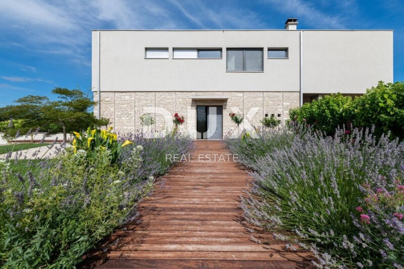 Umag, the first city at the entrance to Istria from the north, conquers with its charm, diversity and richness of offer. Umag is a town that synthesizes the peculiarities of the entire region through 45 km of coastline and interesting hinterland and is perhaps the best introduction to a different experience of the Mediterranean. The town of Umag has an extremely interesting history: it was discovered by Roman nobles and they decided to appropriate it as their summer residence. The splend and glamor of those times are reflected today in the Venetian houses of the old town - parts of the walls and towers have been preserved, as well as Renaissance and Baroque buildings and churches. Only 400 m from the sea is located this luxury villa equipped with high-end appliances, central computer for lighting and heating, custom-made furniture, high-end lighting system and underfloor heating. It consists of a spacious living room, 4 bedrooms, 4 bathrooms and 1 toilet. The house has 336 m2 of living space, surrounded by three terraces overlooking the sea, swimming pool, olive grove and Mediterranean greenery. It is located 5 minutes from the city center. Iva Zajc Agent s licencom E- www.dux-istra.com ISTRIA, UMAG Luxury modern villa with sea view.